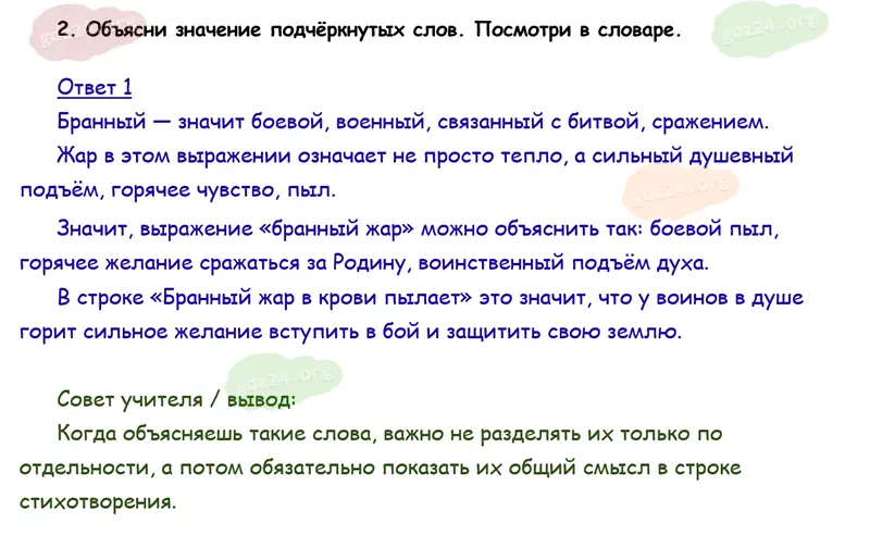Подробные ответы к 2 заданию на 101 странице учебника по литературному чтению Климанова Л. Ф., Горецкий В. Г., Голованова М. В. и др. 2026 года ФГОС, 4 класс 2 часть. Родина. Глинка Ф. М. Солдатская песнь.