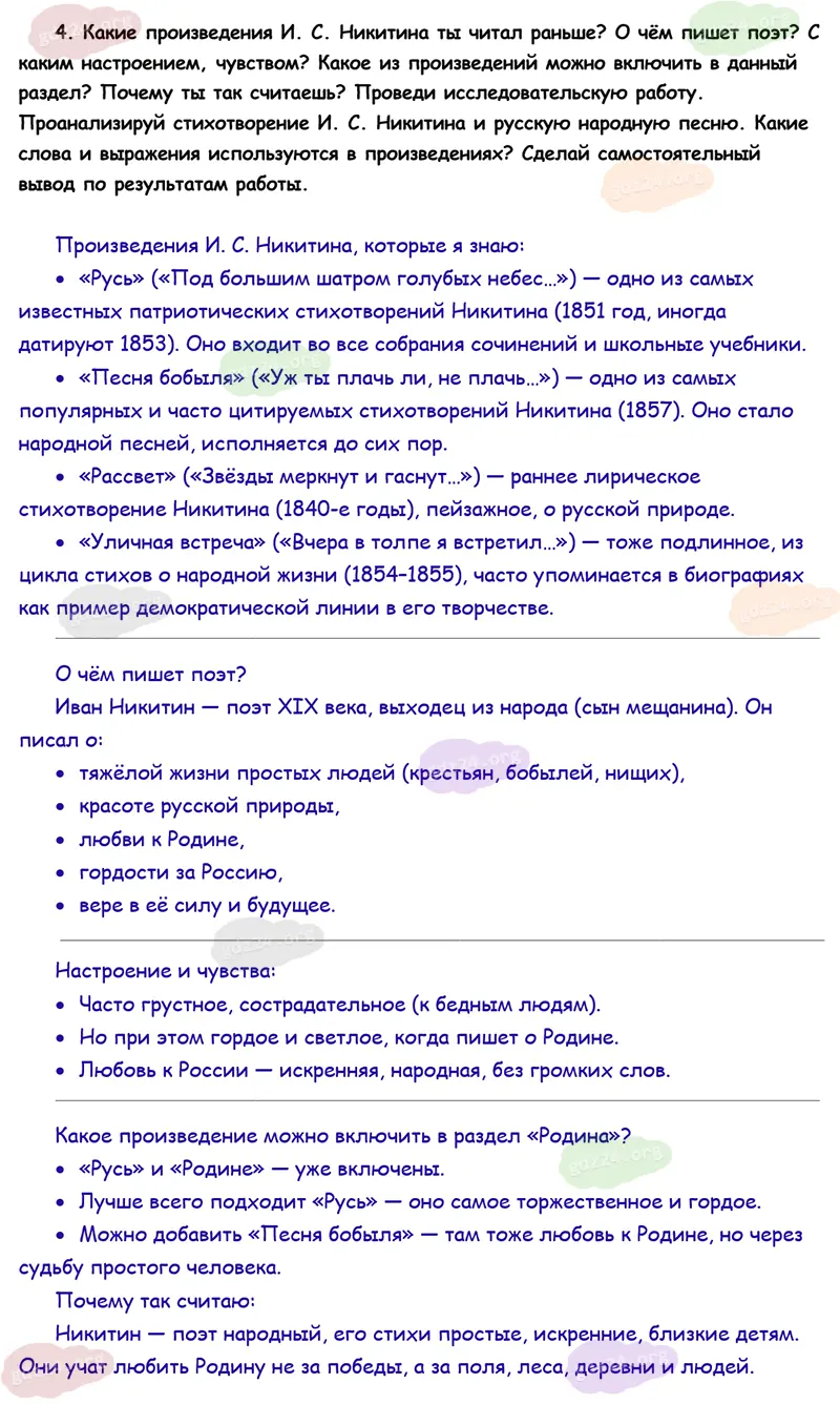 Подробные ответы к 4 заданию на 104 странице учебника по литературному чтению Климанова Л. Ф., Горецкий В. Г., Голованова М. В. и др. 2026 года ФГОС, 4 класс 2 часть. Родина. Проверим себя.