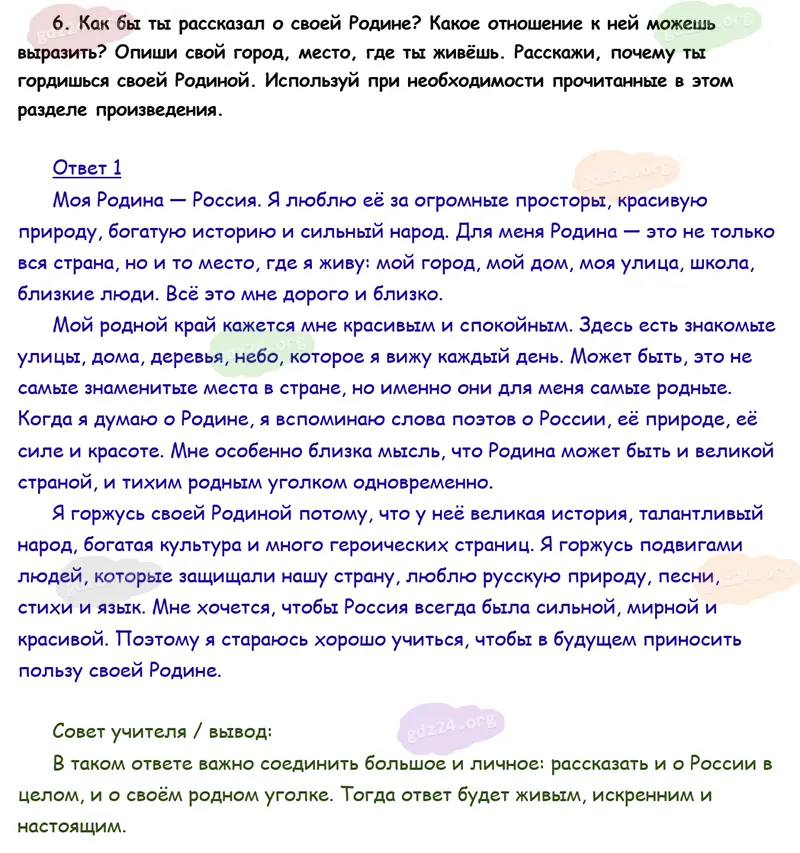 Подробные ответы к 6 заданию на 104 странице учебника по литературному чтению Климанова Л. Ф., Горецкий В. Г., Голованова М. В. и др. 2026 года ФГОС, 4 класс 2 часть. Родина. Проверим себя.