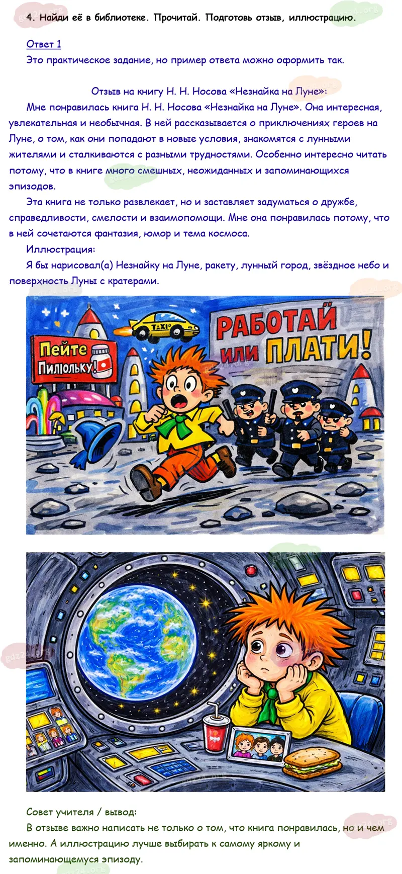 Подробные ответы к 4 заданию на 107 странице учебника по литературному чтению Климанова Л. Ф., Горецкий В. Г., Голованова М. В. и др. 2026 года ФГОС, 4 класс 2 часть. Страна Фантазия. В мире книг.