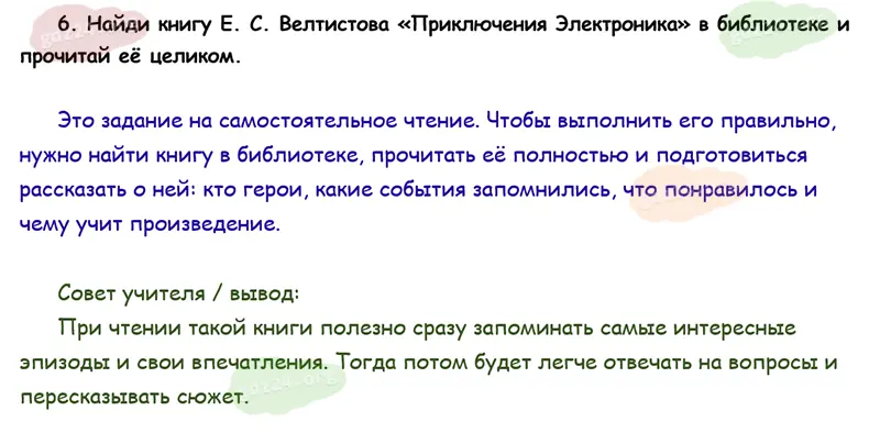 Подробные ответы к 6 заданию на 113 странице учебника по литературному чтению Климанова Л. Ф., Горецкий В. Г., Голованова М. В. и др. 2026 года ФГОС, 4 класс 2 часть. Страна Фантазия. Велтистов Е. С. Приключения Электроника.