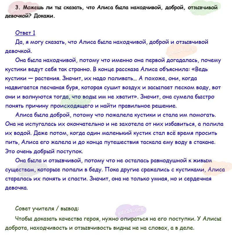 Подробные ответы к 3 заданию на 119 странице учебника по литературному чтению Климанова Л. Ф., Горецкий В. Г., Голованова М. В. и др. 2026 года ФГОС, 4 класс 2 часть. Страна Фантазия. Булычёв Кир. Путешествие Алисы.