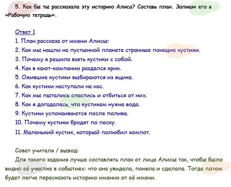 Подробные ответы к 5 заданию на 119 странице учебника по литературному чтению Климанова Л. Ф., Горецкий В. Г., Голованова М. В. и др. 2026 года ФГОС, 4 класс 2 часть. Страна Фантазия. Булычёв Кир. Путешествие Алисы.