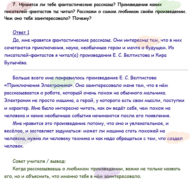 Подробные ответы к 7 заданию на 120 странице учебника по литературному чтению Климанова Л. Ф., Горецкий В. Г., Голованова М. В. и др. 2026 года ФГОС, 4 класс 2 часть. Страна Фантазия. Проверим себя.