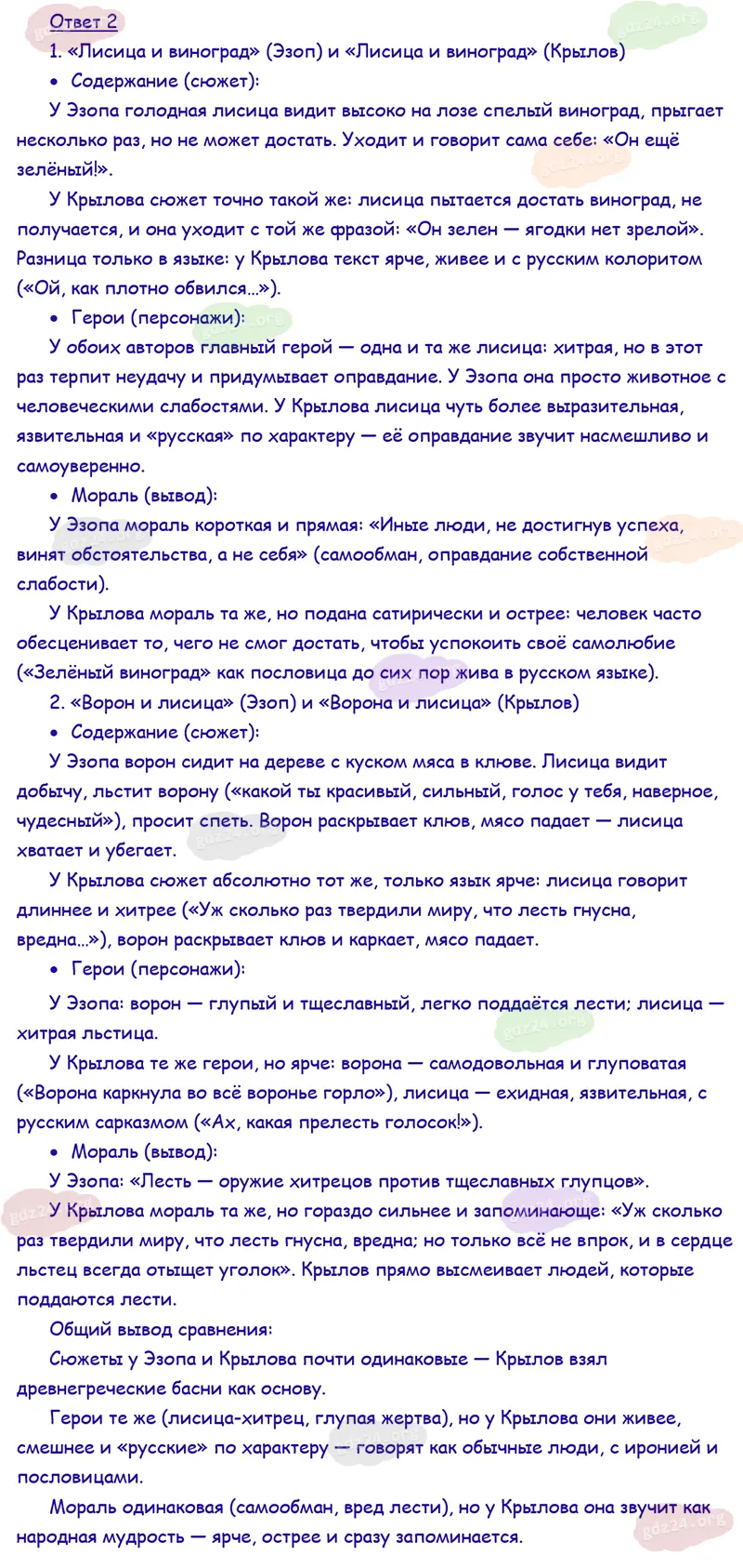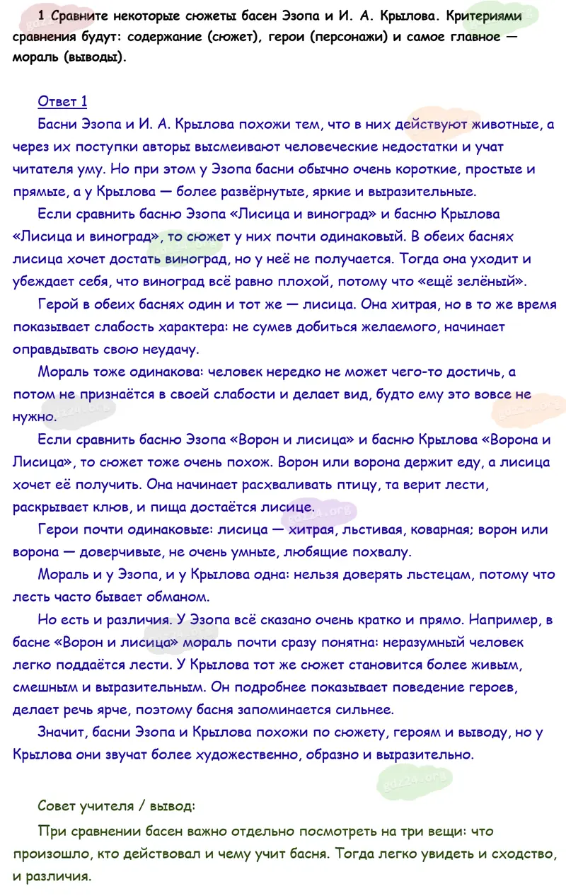 Подробные ответы к 1 заданию на 124 странице учебника по литературному чтению Климанова Л. Ф., Горецкий В. Г., Голованова М. В. и др. 2026 года ФГОС, 4 класс 2 часть. Зарубежная литература. Эзоп «Лисица и виноград» и «Ворон и лисица».