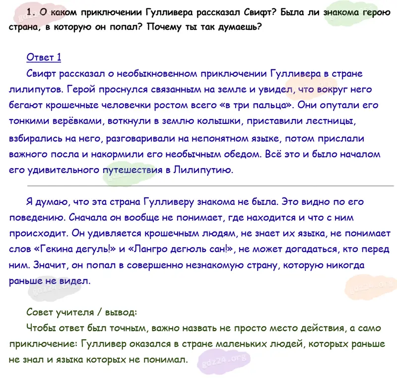 Подробные ответы к 1 заданию на 129 странице учебника по литературному чтению Климанова Л. Ф., Горецкий В. Г., Голованова М. В. и др. 2026 года ФГОС, 4 класс 2 часть. Зарубежная литература. Свифт Дж. Путешествия Гулливера.