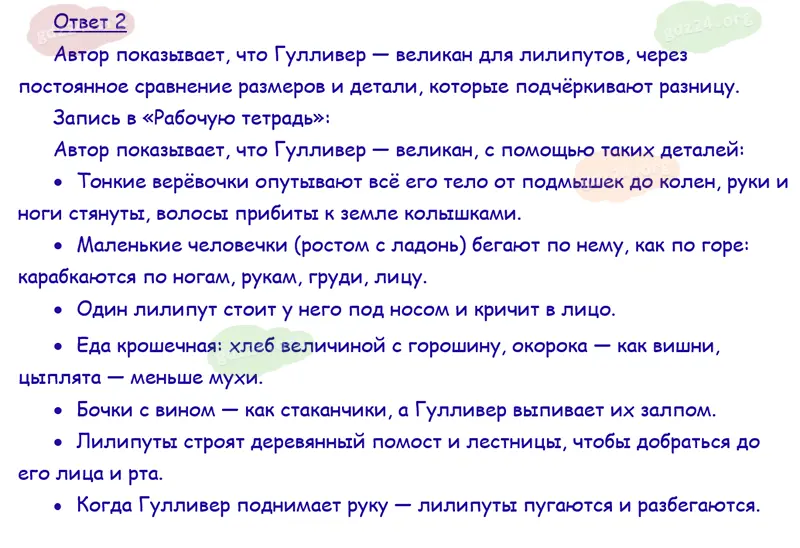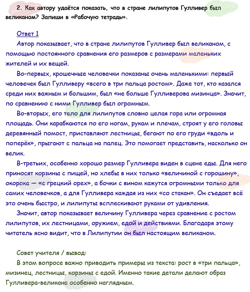 Подробные ответы к 2 заданию на 129 странице учебника по литературному чтению Климанова Л. Ф., Горецкий В. Г., Голованова М. В. и др. 2026 года ФГОС, 4 класс 2 часть. Зарубежная литература. Свифт Дж. Путешествия Гулливера.