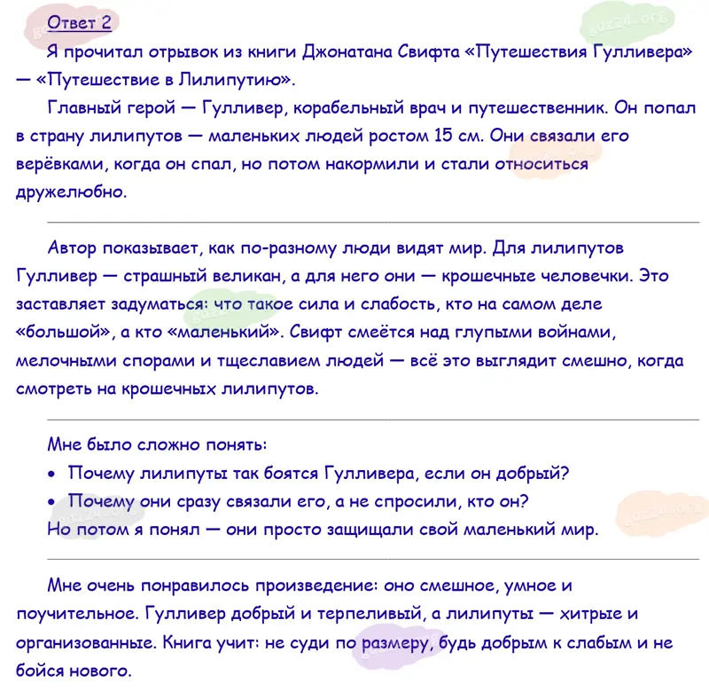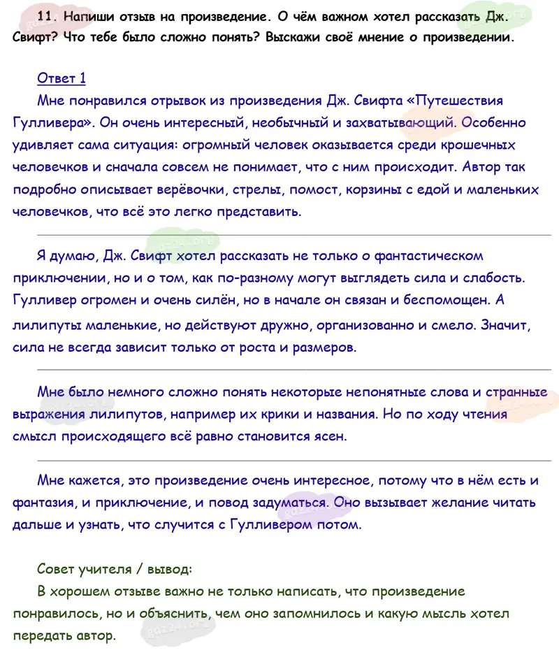 Подробные ответы к 11 заданию на 130 странице учебника по литературному чтению Климанова Л. Ф., Горецкий В. Г., Голованова М. В. и др. 2026 года ФГОС, 4 класс 2 часть. Зарубежная литература. Свифт Дж. Путешествия Гулливера.