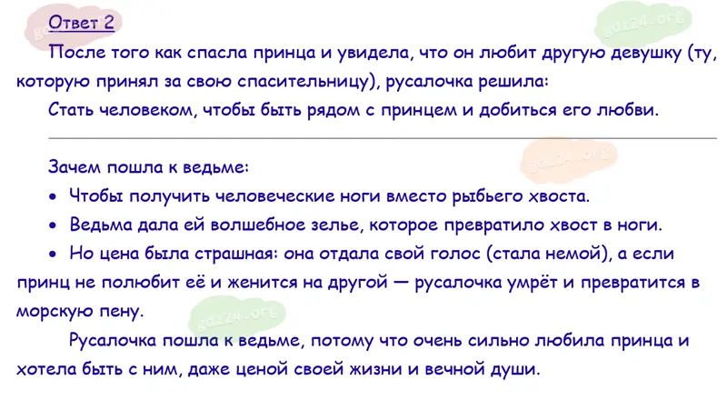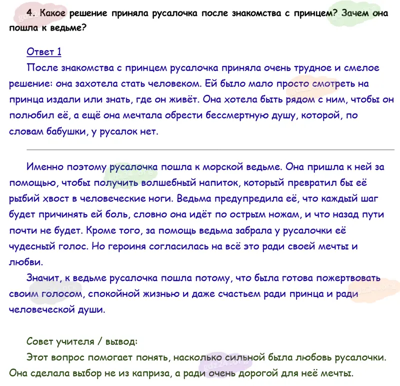 Подробные ответы к 4 заданию на 148 странице учебника по литературному чтению Климанова Л. Ф., Горецкий В. Г., Голованова М. В. и др. 2026 года ФГОС, 4 класс 2 часть. Зарубежная литература. Андерсен X. К. Русалочка.
