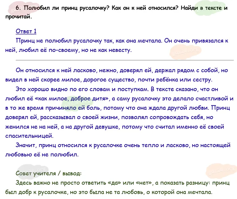 Подробные ответы к 6 заданию на 148 странице учебника по литературному чтению Климанова Л. Ф., Горецкий В. Г., Голованова М. В. и др. 2026 года ФГОС, 4 класс 2 часть. Зарубежная литература. Андерсен X. К. Русалочка.