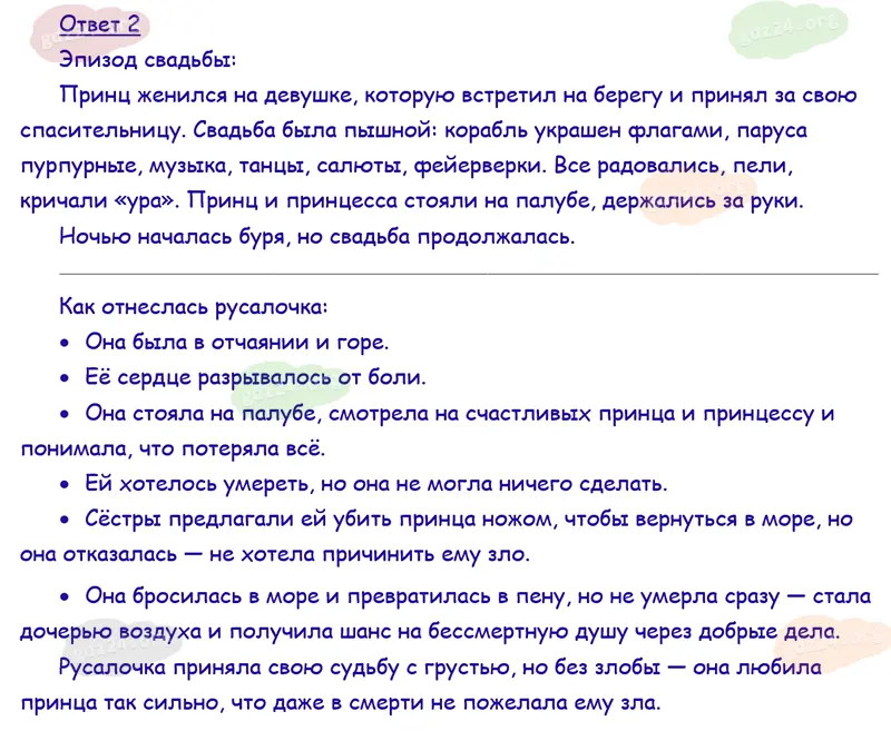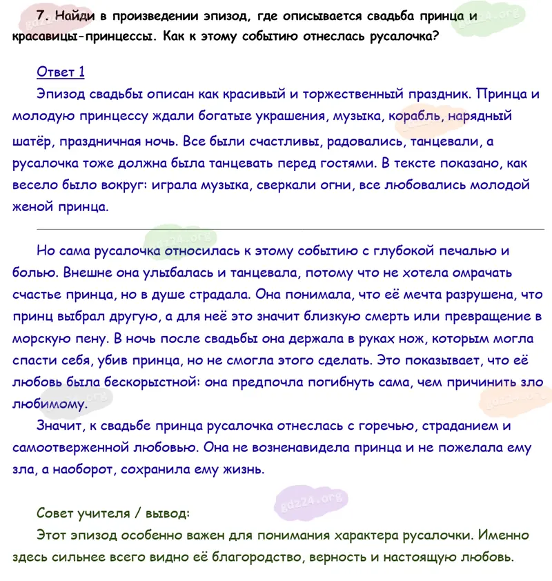 Подробные ответы к 7 заданию на 148 странице учебника по литературному чтению Климанова Л. Ф., Горецкий В. Г., Голованова М. В. и др. 2026 года ФГОС, 4 класс 2 часть. Зарубежная литература. Андерсен X. К. Русалочка.