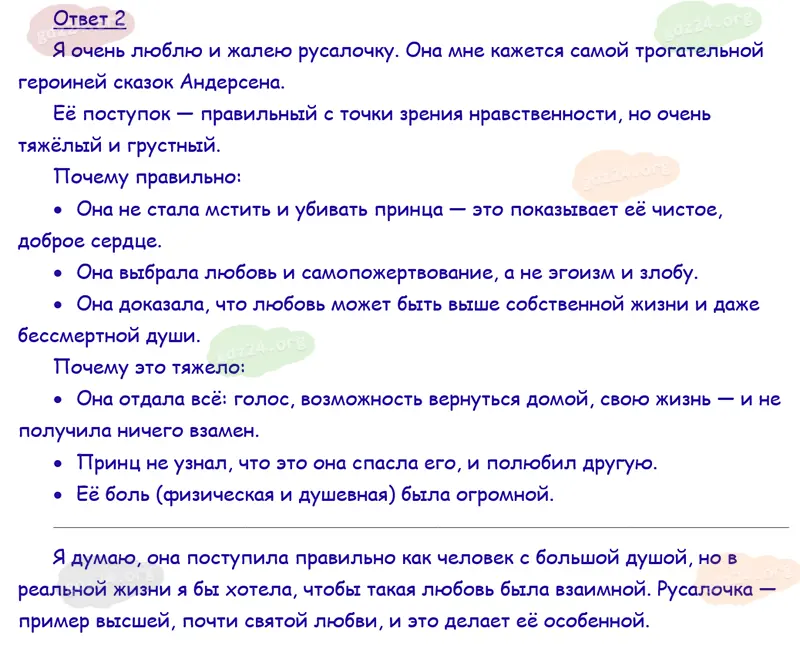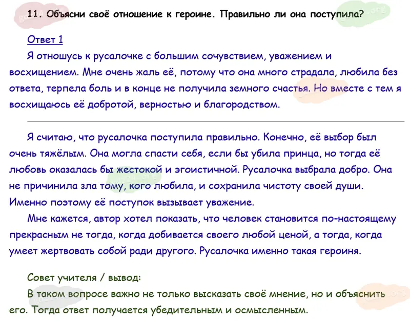 Подробные ответы к 11 заданию на 149 странице учебника по литературному чтению Климанова Л. Ф., Горецкий В. Г., Голованова М. В. и др. 2026 года ФГОС, 4 класс 2 часть. Зарубежная литература. Андерсен X. К. Русалочка.