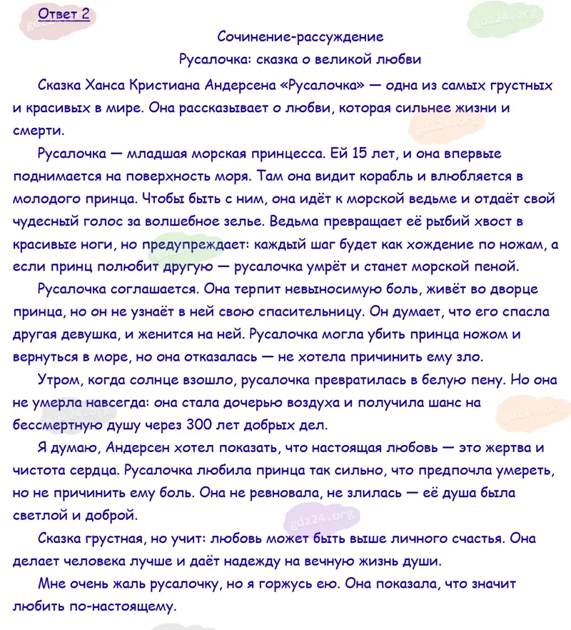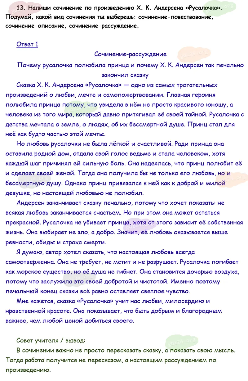 Подробные ответы к 13 заданию на 149 странице учебника по литературному чтению Климанова Л. Ф., Горецкий В. Г., Голованова М. В. и др. 2026 года ФГОС, 4 класс 2 часть. Зарубежная литература. Андерсен X. К. Русалочка.