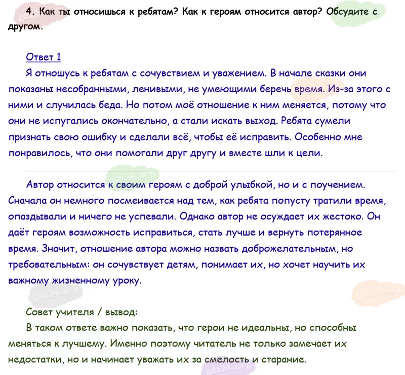 Подробные ответы к 4 заданию на 15 странице учебника по литературному чтению Климанова Л. Ф., Горецкий В. Г., Голованова М. В. и др. 2026 года ФГОС, 4 класс 2 часть. Делу время — потехе час. Шварц Е. Л. Сказка о потерянном времени.