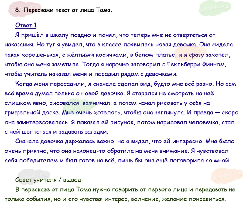 Подробные ответы к 8 заданию на 155 странице учебника по литературному чтению Климанова Л. Ф., Горецкий В. Г., Голованова М. В. и др. 2026 года ФГОС, 4 класс 2 часть. Зарубежная литература. Твен Марк. Приключения Тома Сойера.