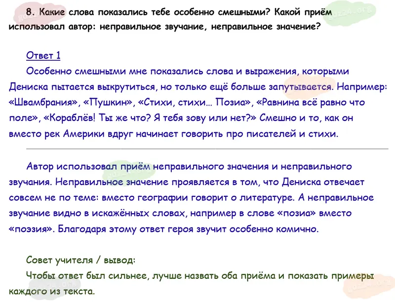 Подробные ответы к 8 заданию на 21 странице учебника по литературному чтению Климанова Л. Ф., Горецкий В. Г., Голованова М. В. и др. 2026 года ФГОС, 4 класс 2 часть. Делу время — потехе час. Драгунский В. Ю. Главные реки.