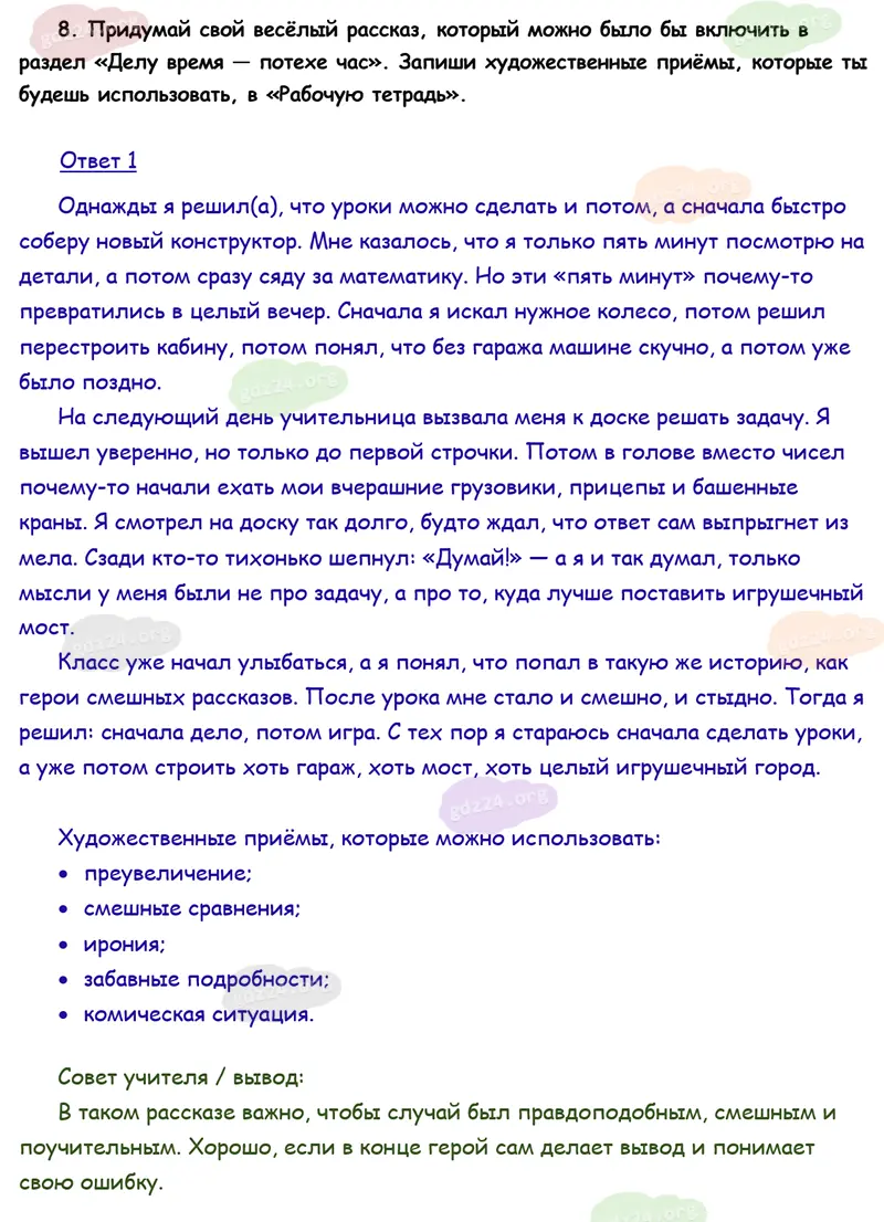Подробные ответы к 8 заданию на 26 странице учебника по литературному чтению Климанова Л. Ф., Горецкий В. Г., Голованова М. В. и др. 2026 года ФГОС, 4 класс 2 часть. Делу время — потехе час. Проверим себя.