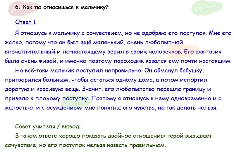 Подробные ответы к 6 заданию на 36 странице учебника по литературному чтению Климанова Л. Ф., Горецкий В. Г., Голованова М. В. и др. 2026 года ФГОС, 4 класс 2 часть. Страна детства. Житков Б. С. Как я ловил человечков.