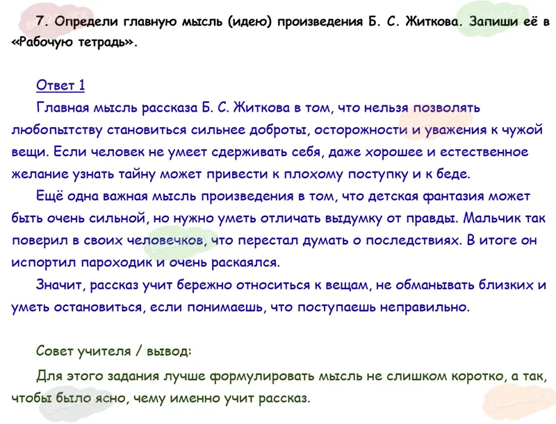 Подробные ответы к 7 заданию на 36 странице учебника по литературному чтению Климанова Л. Ф., Горецкий В. Г., Голованова М. В. и др. 2026 года ФГОС, 4 класс 2 часть. Страна детства. Житков Б. С. Как я ловил человечков.