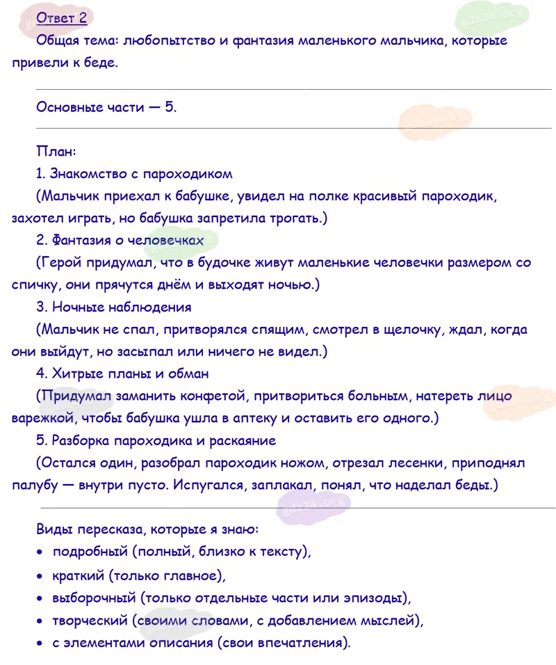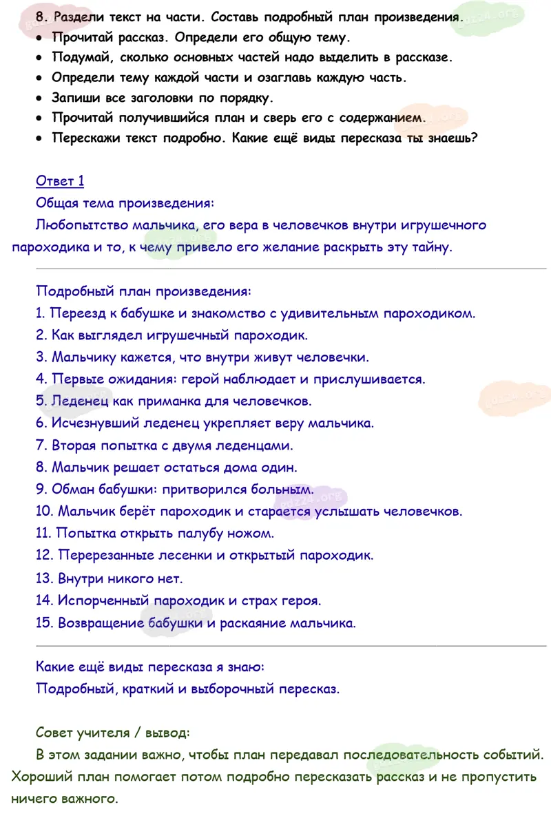 Подробные ответы к 8 заданию на 36 странице учебника по литературному чтению Климанова Л. Ф., Горецкий В. Г., Голованова М. В. и др. 2026 года ФГОС, 4 класс 2 часть. Страна детства. Житков Б. С. Как я ловил человечков.