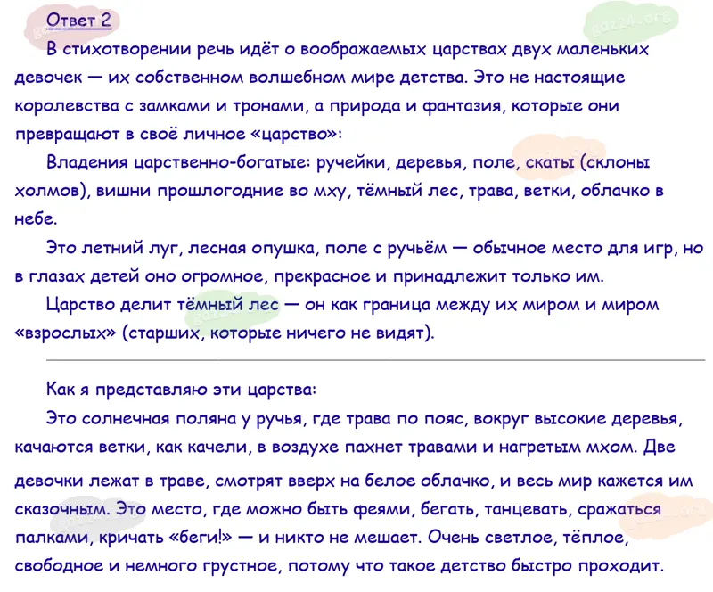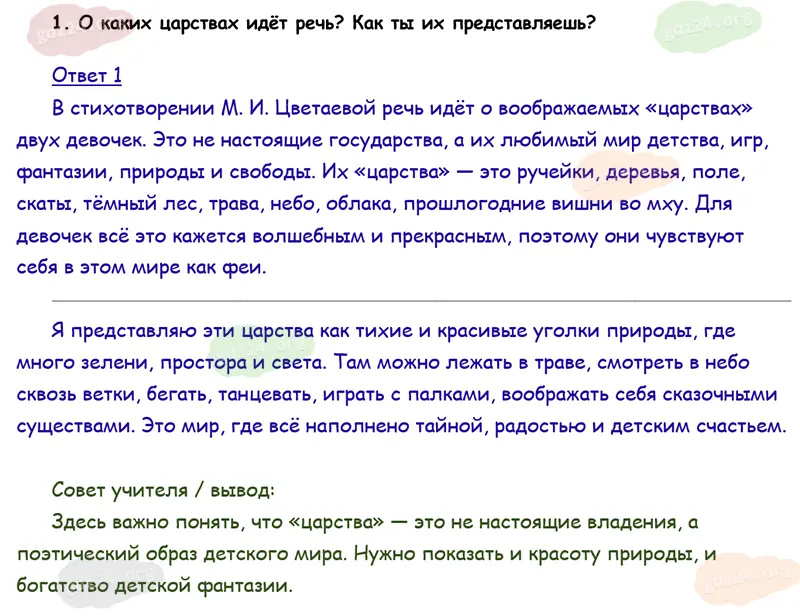 Подробные ответы к 1 заданию на 52 странице учебника по литературному чтению Климанова Л. Ф., Горецкий В. Г., Голованова М. В. и др. 2026 года ФГОС, 4 класс 2 часть. Страна детства. Цветаева М. И. Наши царства.