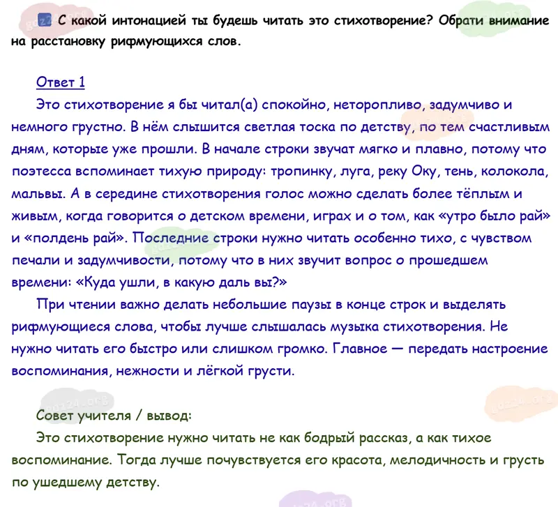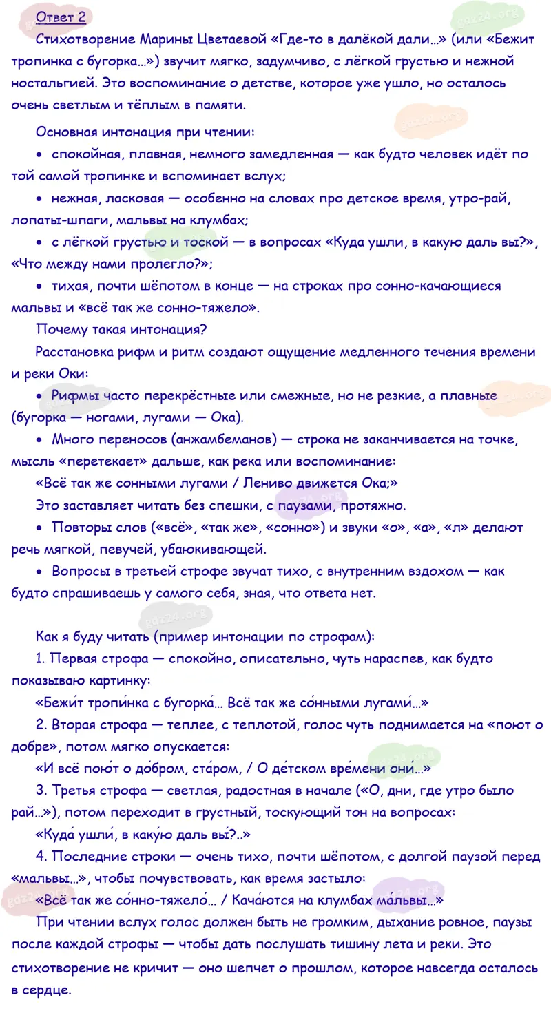 Подробные ответы к заданию на 53 странице учебника по литературному чтению Климанова Л. Ф., Горецкий В. Г., Голованова М. В. и др. 2026 года ФГОС, 4 класс 2 часть. Страна детства. Цветаева М. И. «Бежит тропинка с бугорка...».