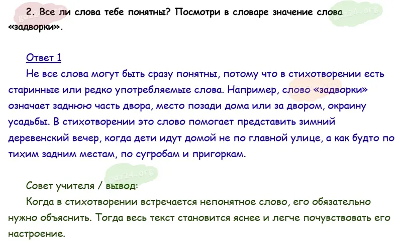 Подробные ответы к 2 заданию на 54 странице учебника по литературному чтению Климанова Л. Ф., Горецкий В. Г., Голованова М. В. и др. 2026 года ФГОС, 4 класс 2 часть. Страна детства. Есенин С. А. Бабушкины сказки.