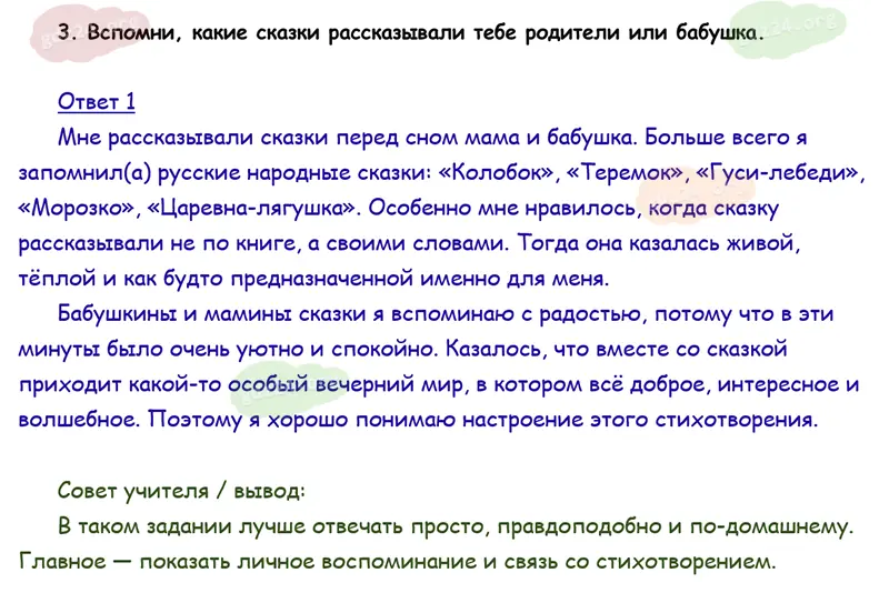 Подробные ответы к 3 заданию на 54 странице учебника по литературному чтению Климанова Л. Ф., Горецкий В. Г., Голованова М. В. и др. 2026 года ФГОС, 4 класс 2 часть. Страна детства. Есенин С. А. Бабушкины сказки.