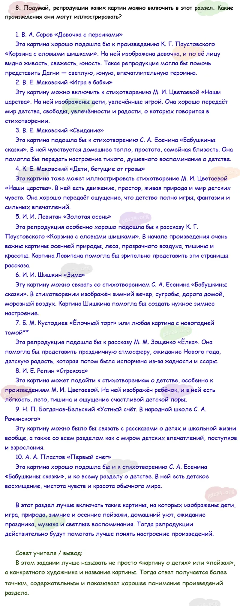 Подробные ответы к 8 заданию на 55 странице учебника по литературному чтению Климанова Л. Ф., Горецкий В. Г., Голованова М. В. и др. 2026 года ФГОС, 4 класс 2 часть. Страна детства. Проверим себя.