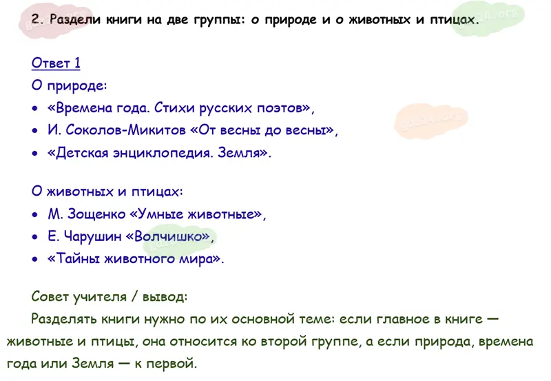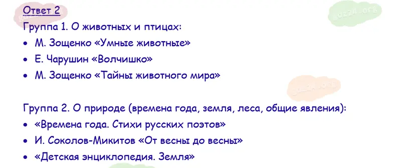 Подробные ответы к 2 заданию на 59 странице учебника по литературному чтению Климанова Л. Ф., Горецкий В. Г., Голованова М. В. и др. 2026 года ФГОС, 4 класс 2 часть. Природа и мы. В мире книг.