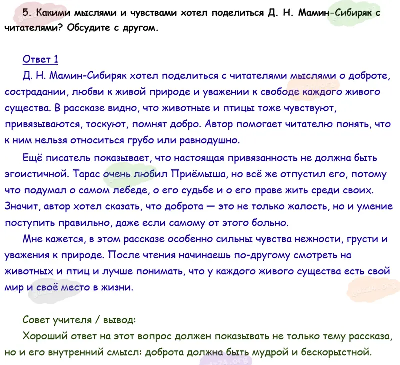 Подробные ответы к 5 заданию на 66 странице учебника по литературному чтению Климанова Л. Ф., Горецкий В. Г., Голованова М. В. и др. 2026 года ФГОС, 4 класс 2 часть. Природа и мы. Мамин-Сибиряк Д. Н. Приёмыш.