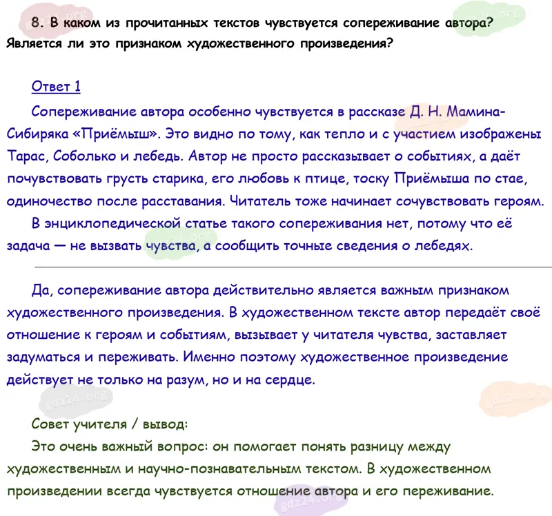 Подробные ответы к 8 заданию на 66 странице учебника по литературному чтению Климанова Л. Ф., Горецкий В. Г., Голованова М. В. и др. 2026 года ФГОС, 4 класс 2 часть. Природа и мы. Мамин-Сибиряк Д. Н. Приёмыш.