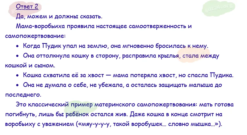 Подробные ответы к 2 заданию на 77 странице учебника по литературному чтению Климанова Л. Ф., Горецкий В. Г., Голованова М. В. и др. 2026 года ФГОС, 4 класс 2 часть. Природа и мы. Максим Горький. Воробьишко.