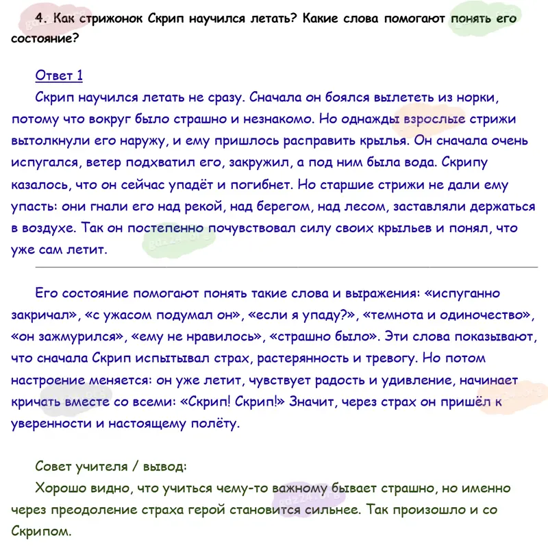 Подробные ответы к 4 заданию на 87 странице учебника по литературному чтению Климанова Л. Ф., Горецкий В. Г., Голованова М. В. и др. 2026 года ФГОС, 4 класс 2 часть. Природа и мы. Астафьев В. П. Стрижонок Скрип.