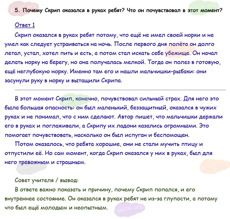 Подробные ответы к 5 заданию на 87 странице учебника по литературному чтению Климанова Л. Ф., Горецкий В. Г., Голованова М. В. и др. 2026 года ФГОС, 4 класс 2 часть. Природа и мы. Астафьев В. П. Стрижонок Скрип.