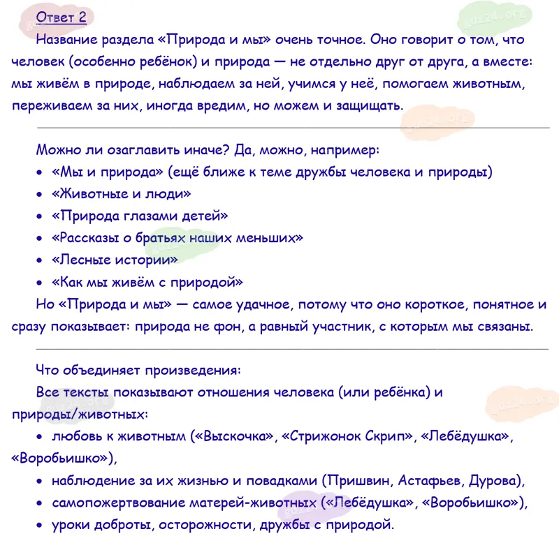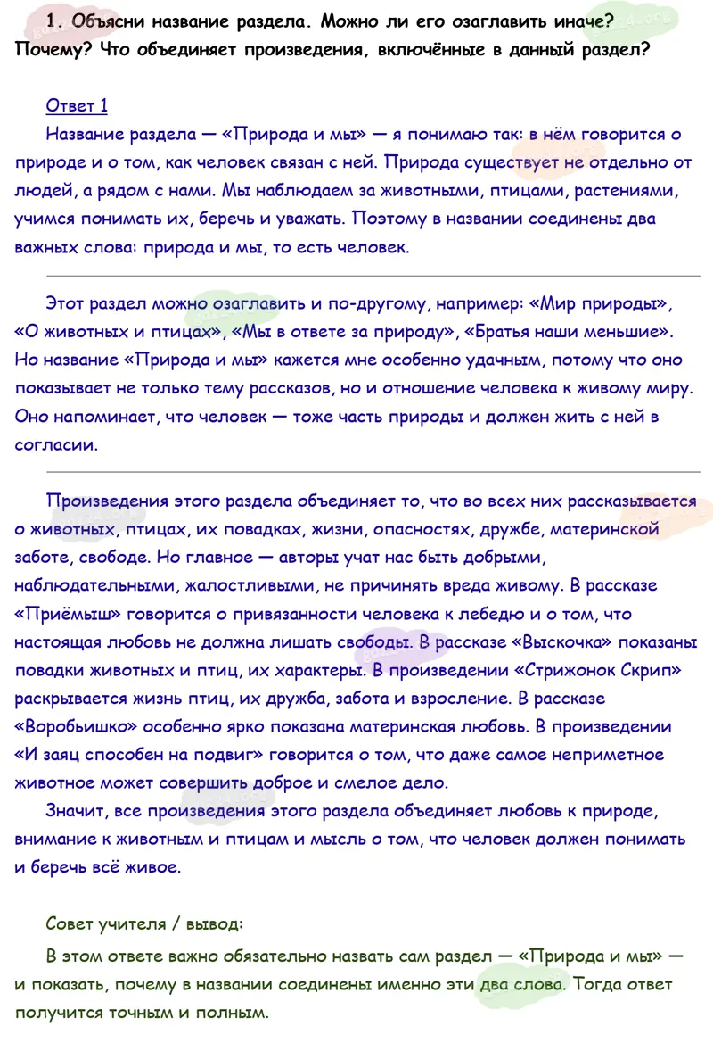 Подробные ответы к 1 заданию на 88 странице учебника по литературному чтению Климанова Л. Ф., Горецкий В. Г., Голованова М. В. и др. 2026 года ФГОС, 4 класс 2 часть. Природа и мы. Проверим себя.