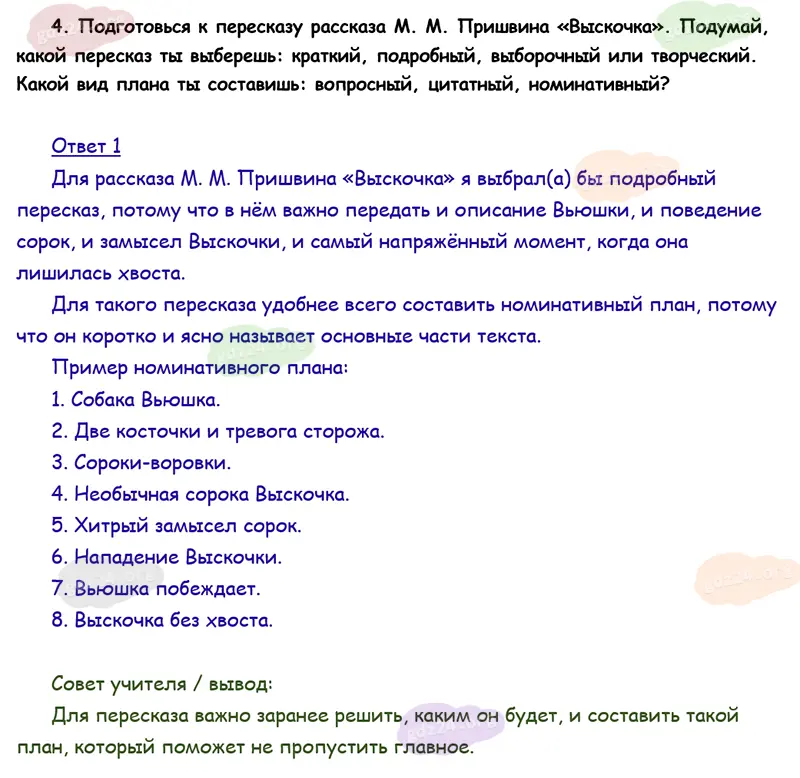 Подробные ответы к 4 заданию на 88 странице учебника по литературному чтению Климанова Л. Ф., Горецкий В. Г., Голованова М. В. и др. 2026 года ФГОС, 4 класс 2 часть. Природа и мы. Проверим себя.
