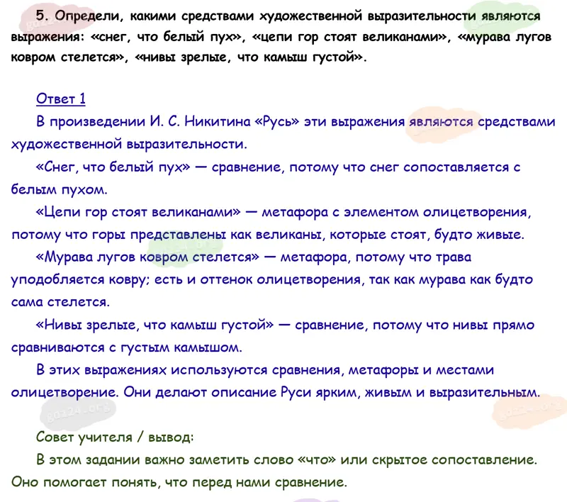 Подробные ответы к 5 заданию на 95 странице учебника по литературному чтению Климанова Л. Ф., Горецкий В. Г., Голованова М. В. и др. 2026 года ФГОС, 4 класс 2 часть. Родина. Никитин И. С. Русь.