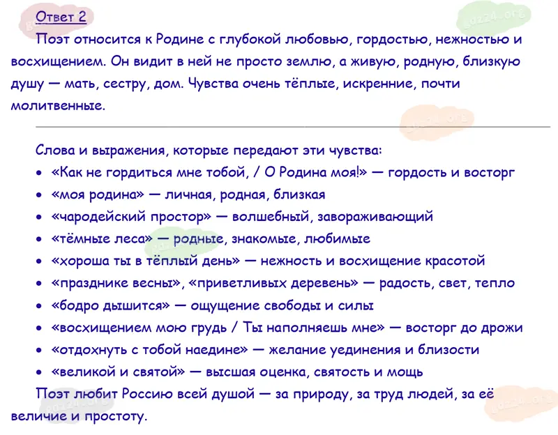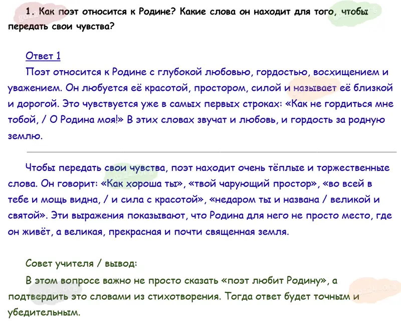 Подробные ответы к 1 заданию на 97 странице учебника по литературному чтению Климанова Л. Ф., Горецкий В. Г., Голованова М. В. и др. 2026 года ФГОС, 4 класс 2 часть. Родина. Дрожжин С. Д. Родине.