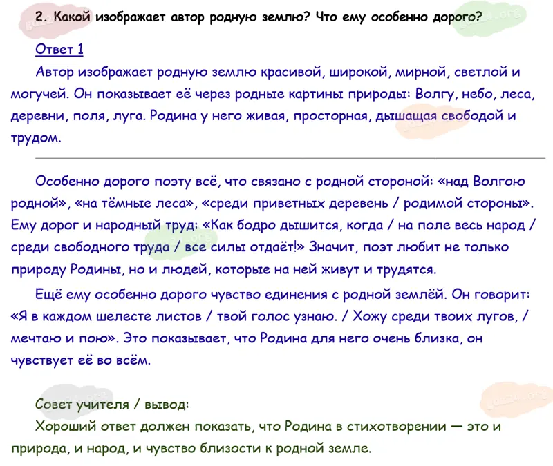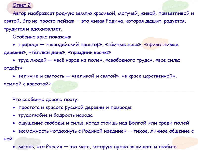 Подробные ответы к 2 заданию на 97 странице учебника по литературному чтению Климанова Л. Ф., Горецкий В. Г., Голованова М. В. и др. 2026 года ФГОС, 4 класс 2 часть. Родина. Дрожжин С. Д. Родине.