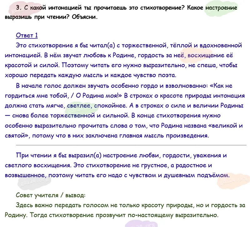 Подробные ответы к 3 заданию на 97 странице учебника по литературному чтению Климанова Л. Ф., Горецкий В. Г., Голованова М. В. и др. 2026 года ФГОС, 4 класс 2 часть. Родина. Дрожжин С. Д. Родине.